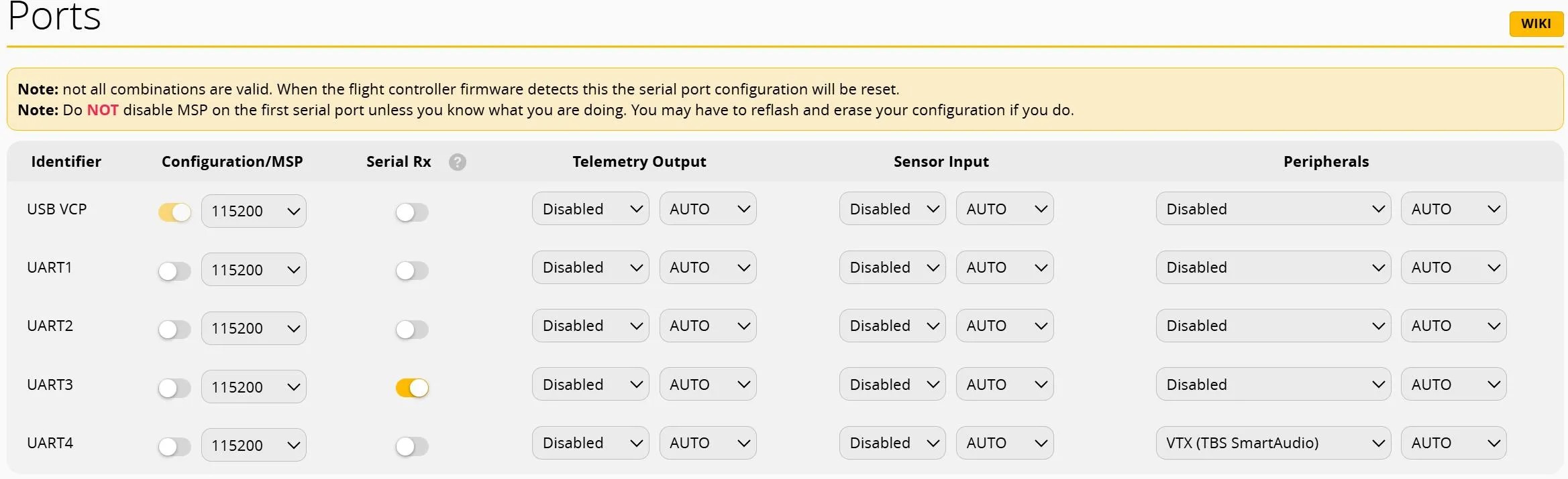 UART1、UART2、UART3(RX用)、UART4(VTX用)