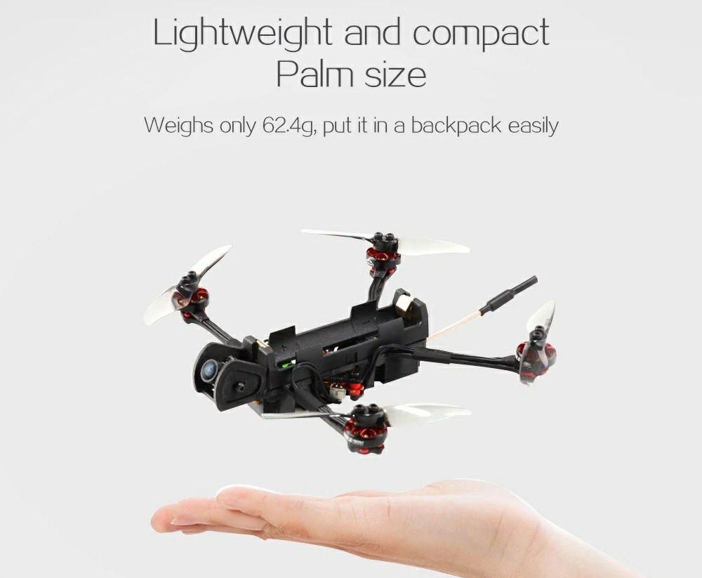 Small and light (62.5g without battery, 140mm motor to motor)