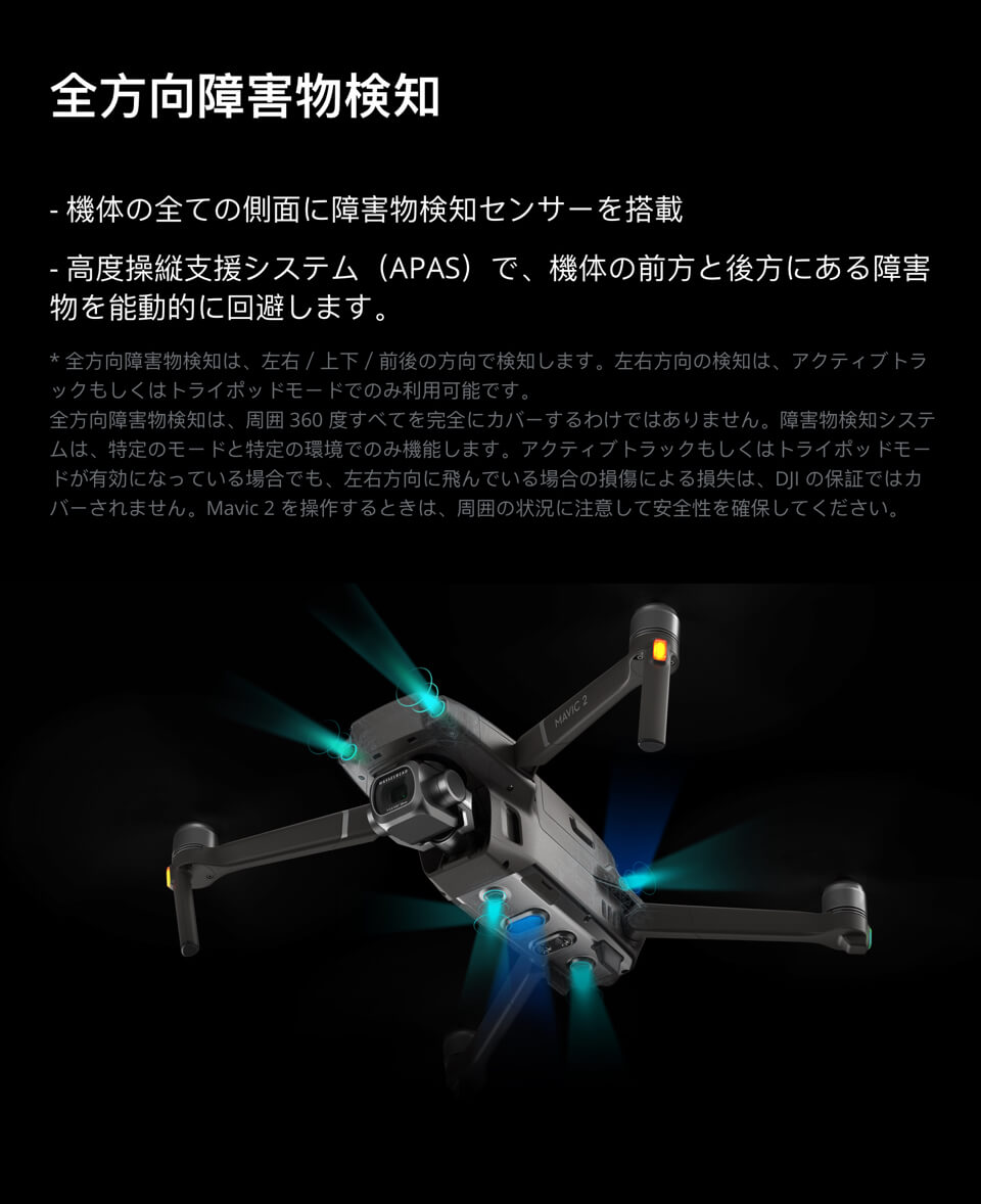 全方位型の障害物センサー、機体下部にLEDライトを搭載し、安全性と安定性が大きく向上した最新モデルです!