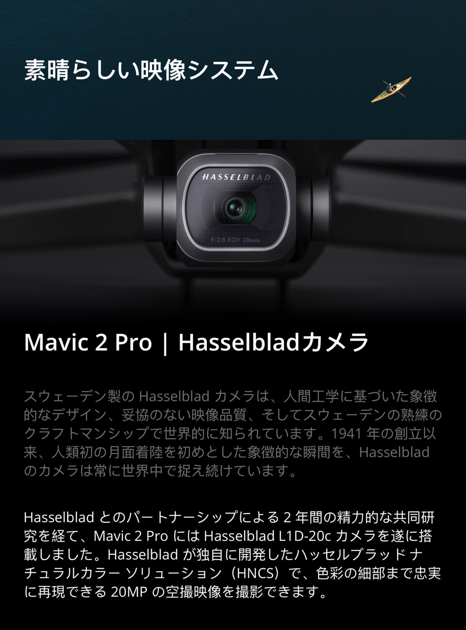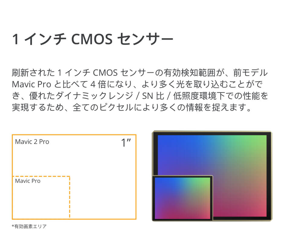 MAVIC 2 Pro は高画質2000万画素1インチセンサー・ハッセルブラッドカメラを搭載。