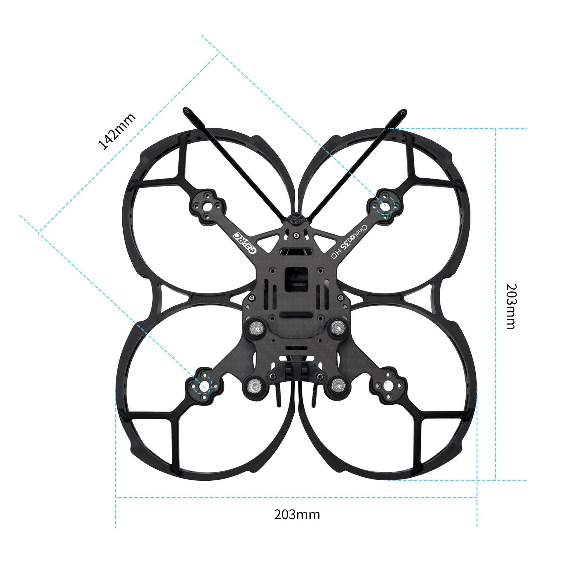 Dimension: 203mm x 203mm x 42mm(Include propeller guard)