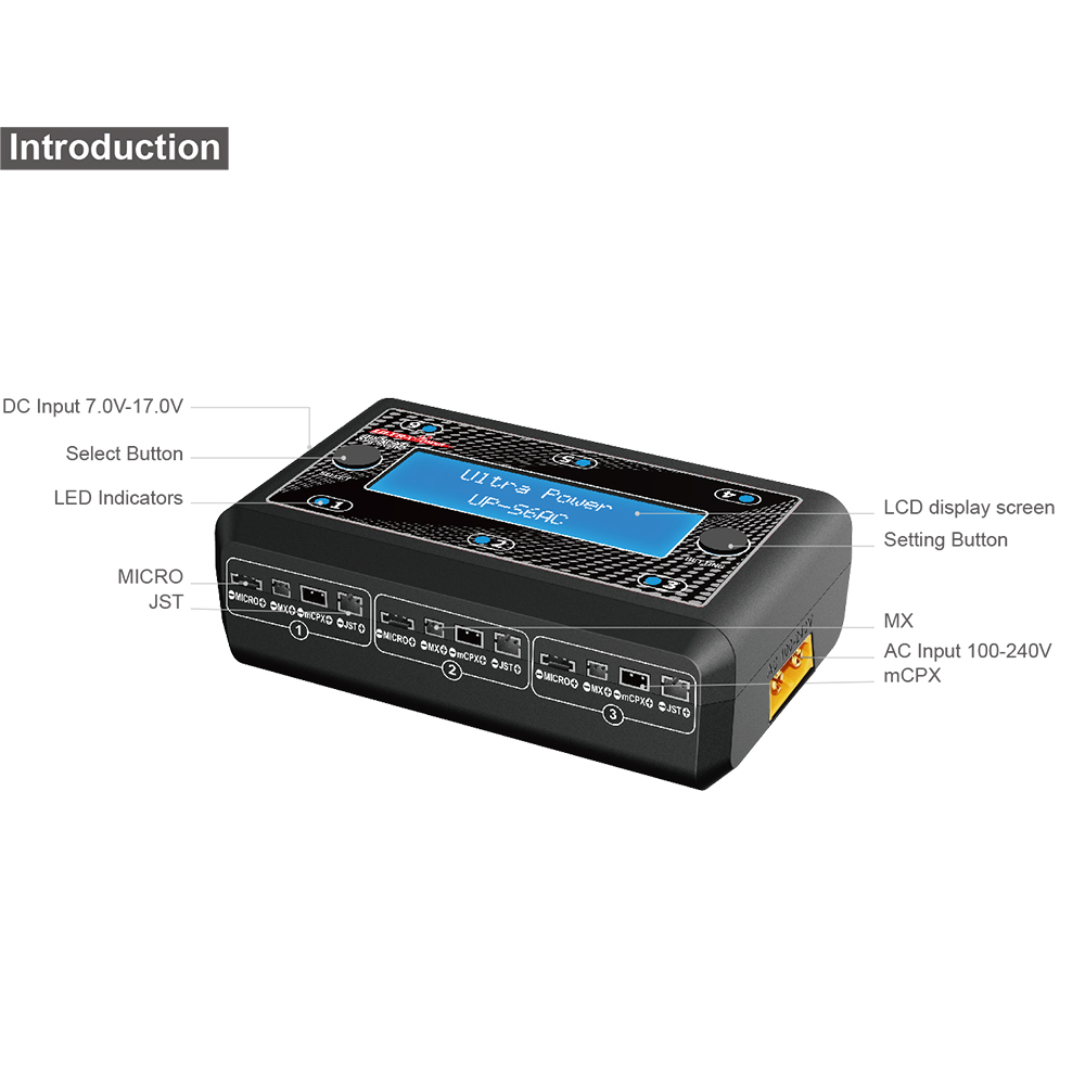 【1セル専用】Ultra Power UP-S6AC 6x4.35W 1S AC/DC LiPO/LiHV Battery Charger