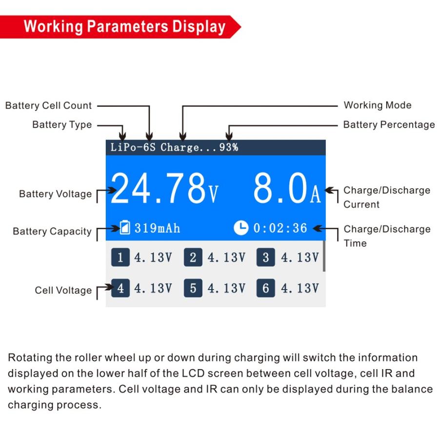対応バッテリー:LiFe/LiION/LiPo/LiHv(1-6S)/NiMH/NiCd(1-16S), Pb(1-12S)