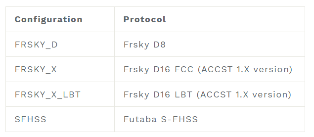 Come with the built-in SPI Frsky Receiver (CC2500 chip), F4 1S 12A AIO FC can be compatible with Futaba S-FHSS, Frsky D8, and D16 protocol. The default protocol is configured to Frsky D16 FCC out of the factory. Pilots could set up the protocol according to your own need in Betaflight Configurator.