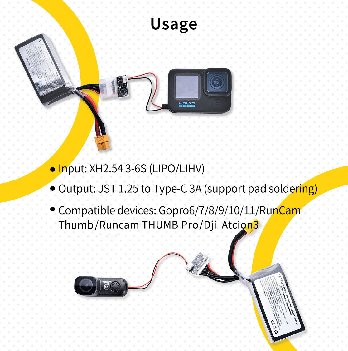 Thumb ProやGoproなどのカメラ電源をバッテリーのバランスコネクターから取り出せます