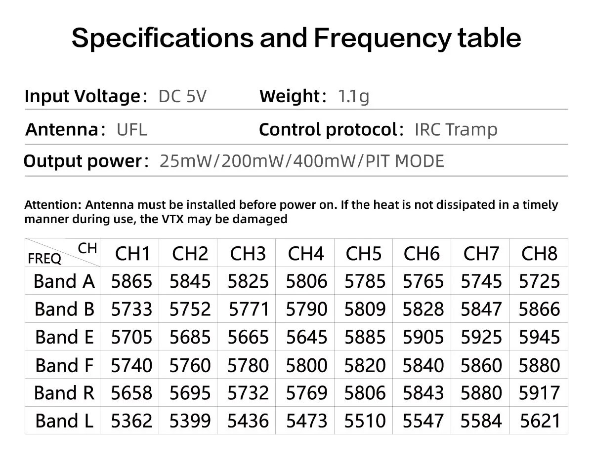 1 x GEPRC RAD Tiny 5.8G 400mW VTX マニュアル