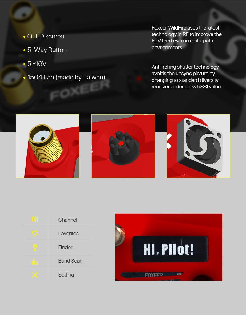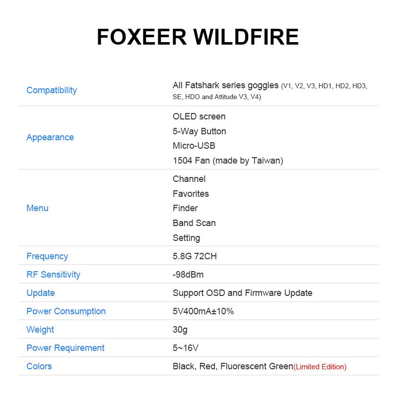 Foxeer Wildfire 5.8GHz 72CH Dual Receiver for Fatshark-Black